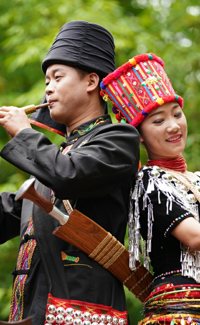 景頗族人口約12.4萬,主要聚居在云南德宏傣族景頗族自治州。云南民族村景頗寨占地15畝,有寬敞大方的各式民居建筑和精美華麗的”山官房”。建筑形式集中表現(xiàn)了景頗族“干欄式”、“倒T型”等結(jié)構(gòu)特征和布局形制。廣場(chǎng)中央豎立著“目腦縱歌示棟”。圖案和雕塑象征著景頗族人民團(tuán)結(jié)向前的意愿和驍勇剛毅的性格。景頗族信仰萬物有靈的原始宗教,信奉鬼神,崇拜祖先。目腦縱歌節(jié)是景頗族最隆重的傳統(tǒng)節(jié)日,每逢節(jié)期人們圍繞“目...